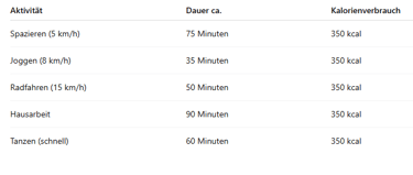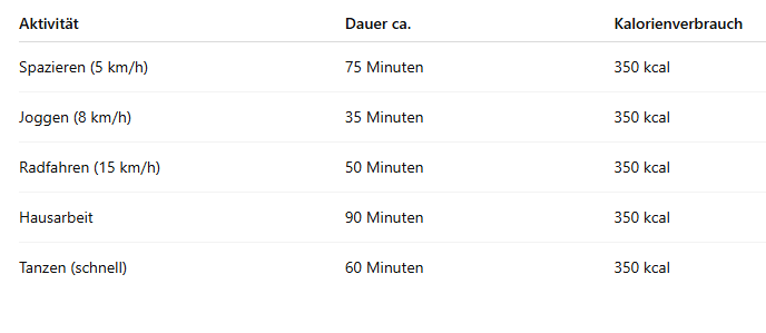 Ein Stück mit ca. 350 kcal kannst du durch folgende Aktivitäten wieder ausgleichen: