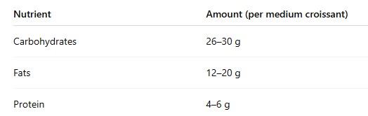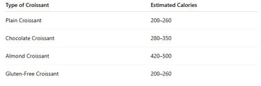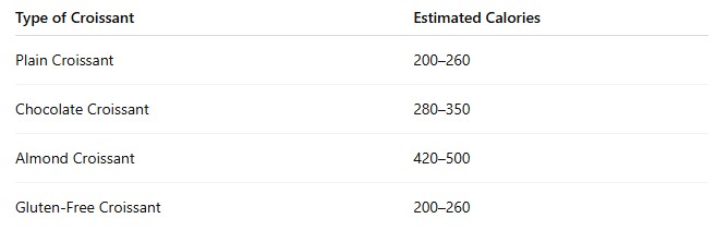 📌 A bakery or packaged croissant can easily contain 300–450 calories, especially flavored ones.