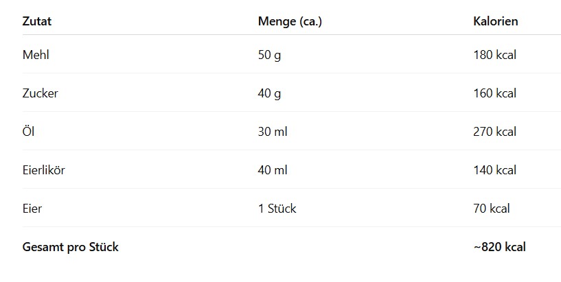 ⚖️ Wie viele Kalorien hat ein Stück Eierlikörkuchen?