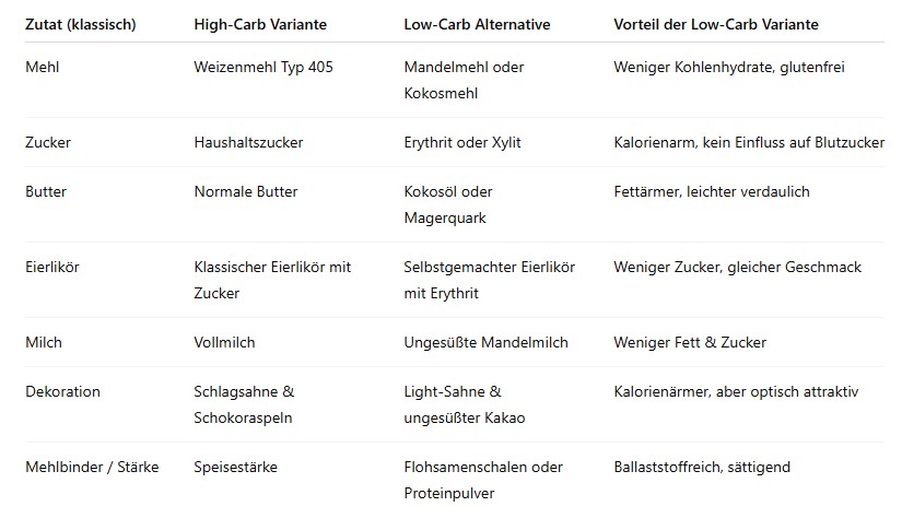 🥣 Vergleich: High-Carb vs. Low-Carb Zutaten im Eierlikörkuchen