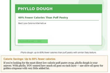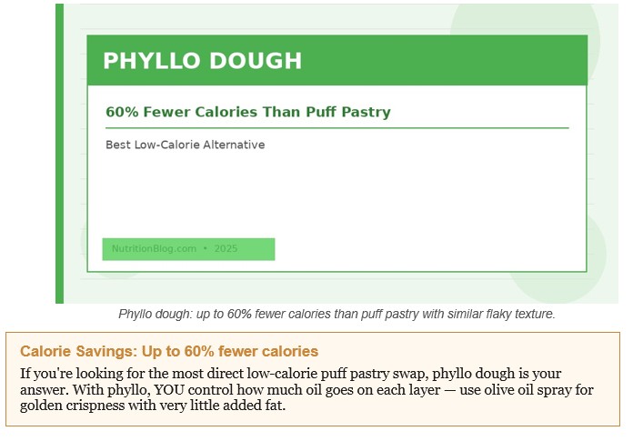 Phyllo dough is the closest and lowest-calorie swap (up to 60% fewer calories)