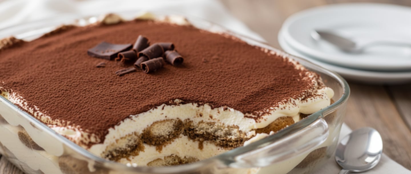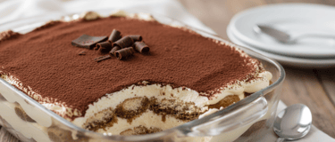 Tiramisu stammt aus Italien und bedeutet wörtlich "Muntermacher“ – eine Anspielung auf die belebende Mischung aus Kaffee und Kakao. Das Tiramisu-Rezept ist eigentlich italienisch und besteht aus Schichten von in Espresso getränkten Löffelbiskuits, Mascarponecreme, Eiern, Zucker und Kakaopulver. Es ist reichhaltig, köstlich und wird gekühlt serviert.