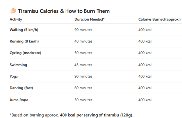 🏃 Wie verbrennt man Tiramisu Kalorien?